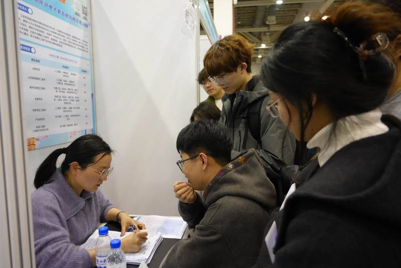 ▲2026苏州春季招聘大会上,求职者在咨询某科研单位。李阳摄